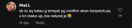 “Sebab tu aku kalau gi tempat yang confirm akan berpeluh, aku takkan make up.. biar natural je..”