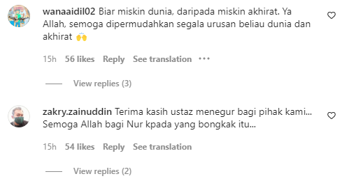 “Terima kasih ustaz menegur bagi pihak kami… Semoga Allah bagi Nur kpada yang bongkak itu…”