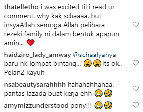 Posting itu dianggap lucu malah ada juga pengikut cuba mengaitkan dengan komen terbaru suaminya, Awal Ashaari di IG yang memberitahu ‘adik’ Lara sudah ditempah menerusi aplikasi membeli belah popular.