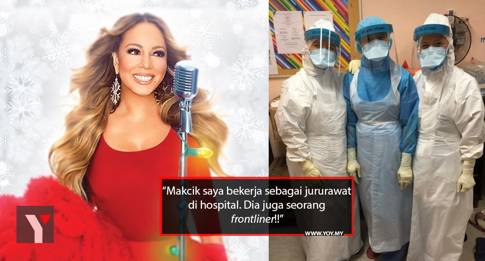 Asraf membalas tweet Mariah dengan foto ibu saudaranya, jururawat bersama dua rakan sekerja lengkap dengan pakaian personal protective equipments (PPE) di sebuah hospital.
