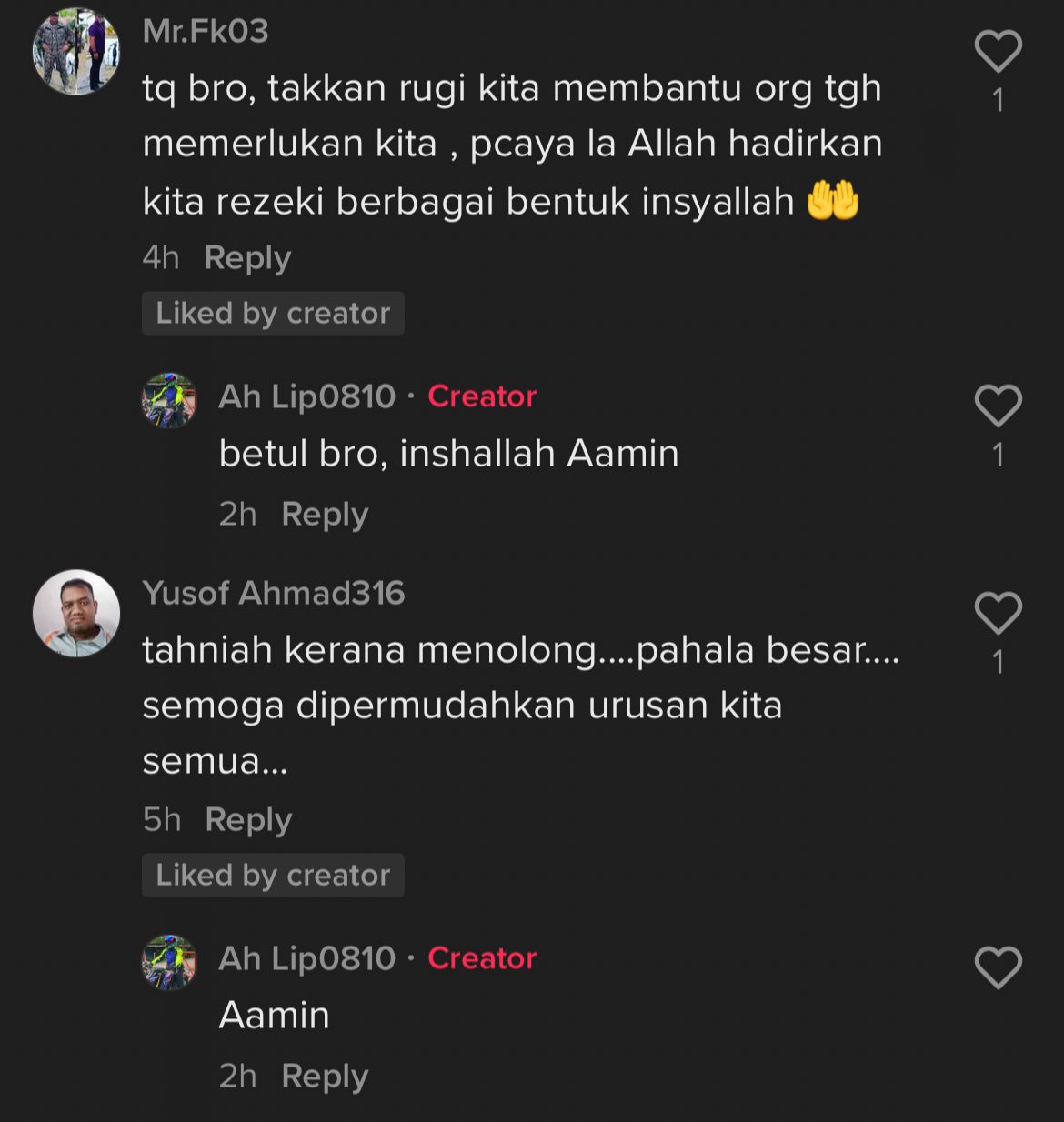 Bukan itu sahaja, para netizen juga berterima kasih kepada lelaki ini kerana membantu apa yang terampubagi meringankan beban mereka tiga beranak dan ramai daripada warganet mendoakan rezeki yang luas buat kedua-dua belah pihak.