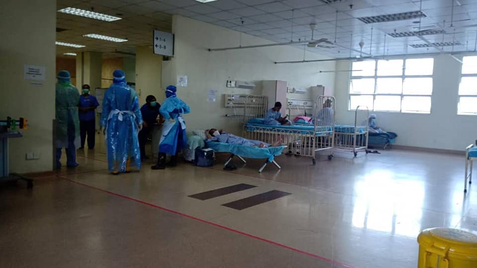 Suami sy tidak dpt hantar kerana dia juga tidak berapa sihat..selepas tiba di hospital sy diperiksa dgn terperinci di bahagian saringan dan mengesyaki mengalami demam denggi tetapi keadaan pernafasan sy tidak stabil & terus dihantar ke red zone bahagian decon unit kecemasan & trauma pd jam 12 tghari kerana suspek c0vid-19.
