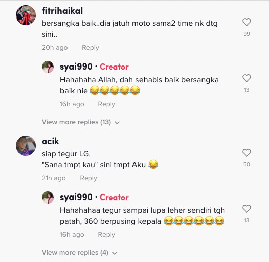 “Eh! Ramainya patah tengkuk.. Bukan main laju menoleh kiri kanan, tak padan dengan tengkuk patah” perli pengguna TikTok ini di kapsyen.