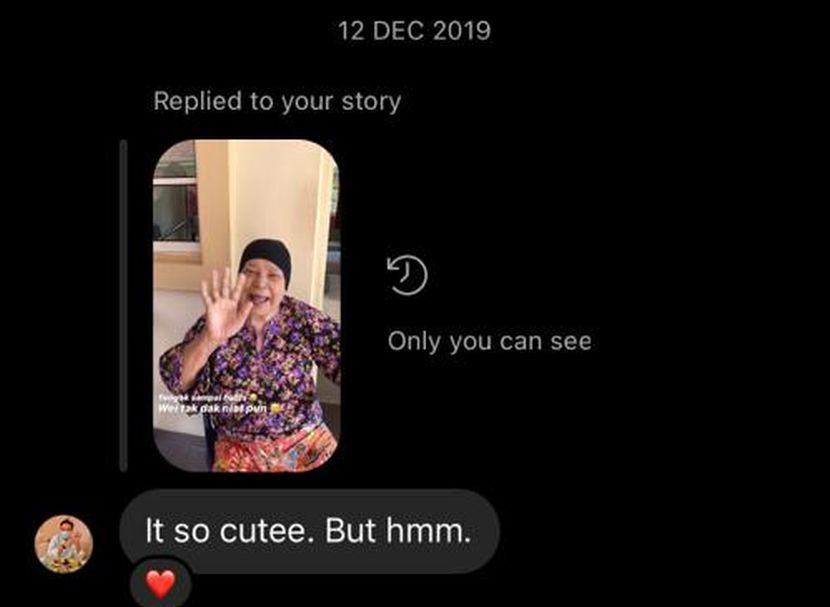 “Kemudian dia ada komen pada satu insta story yang saya buat di rumah orang tua-tua tu. Katanya ‘it so cute, but hmm’ dan daripada situ permulaan hubungan kami.”