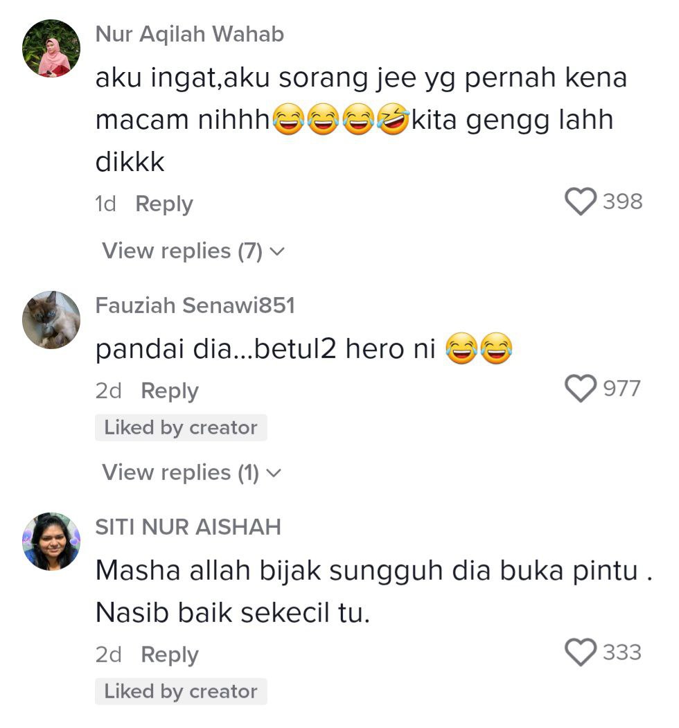 Lebih lucu lagi, ada yang pernah menjadi ‘mangsa’ dimana merekalah yang masuk ke dalam tingkap untuk membuka pintu masa zaman kecil dahulu.
