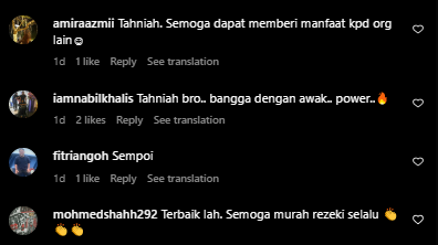 “Alhamdulillah suka dengan niat itu.. bangga tengok kejayaan hang.. semoga terus berjaya dan inspirasi ramai orang”
