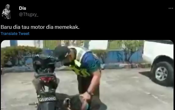 Menerusi video yang tular di laman Twitter @tsfgxy_, kelihatan lelaki itu turut tidak tahan mendengar ekzos motornya sendiri dan mengalihkan kepalanya daripada bunyi yang kuat itu.