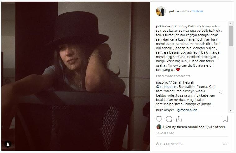 “Happy Birthday to my wife .. semoga kalian semua doa yg baik baik ok . terus sukses dalam kerjaya sebagai anak seni dan kena kuat menempuh hari hari mendatang.