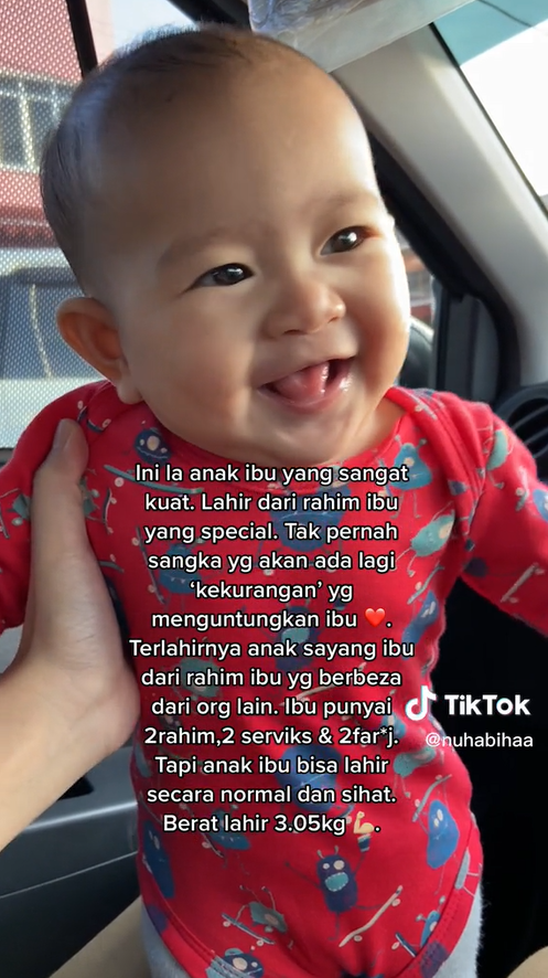 “Inilah anak ibu yang sangat kuat. Lahir dari rahim ibu yang special. Tak pernah sangka ada kekurangan yang ‘menguntungkan’ ibu,” kongsinya lagi sambil menambah, bayinya kini sudah berusia setahun lapan bulan.