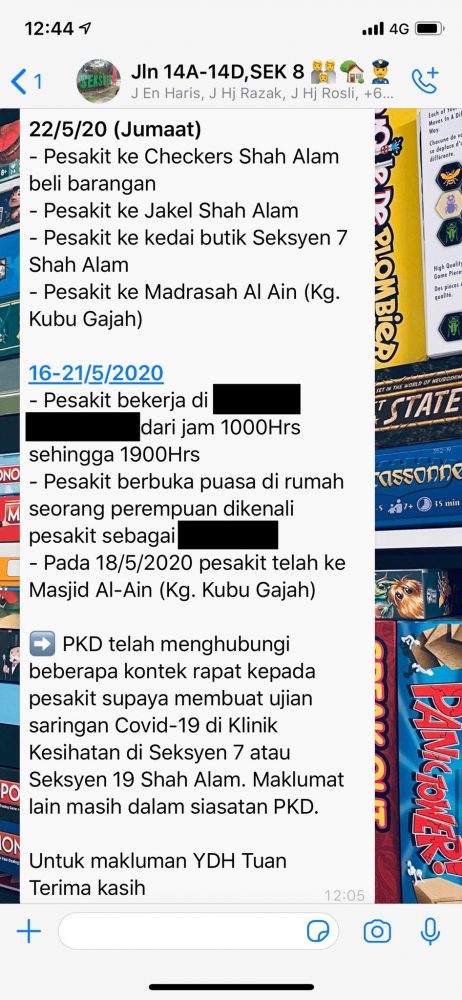 “Hari ni viral satu kes positif Covid dekat Setia Alam. Aku dapat info melalui group whatsapp kawasan kejiranan aku”.